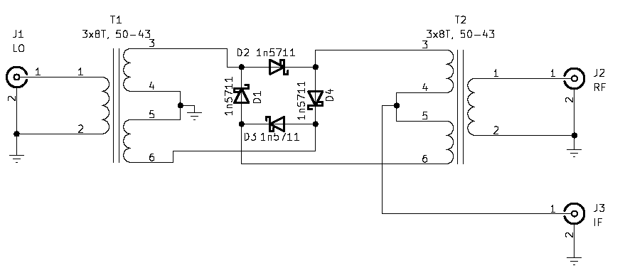 I decided to build a diode ring (double) balanced mixer. The design of these is fairly straight forward: