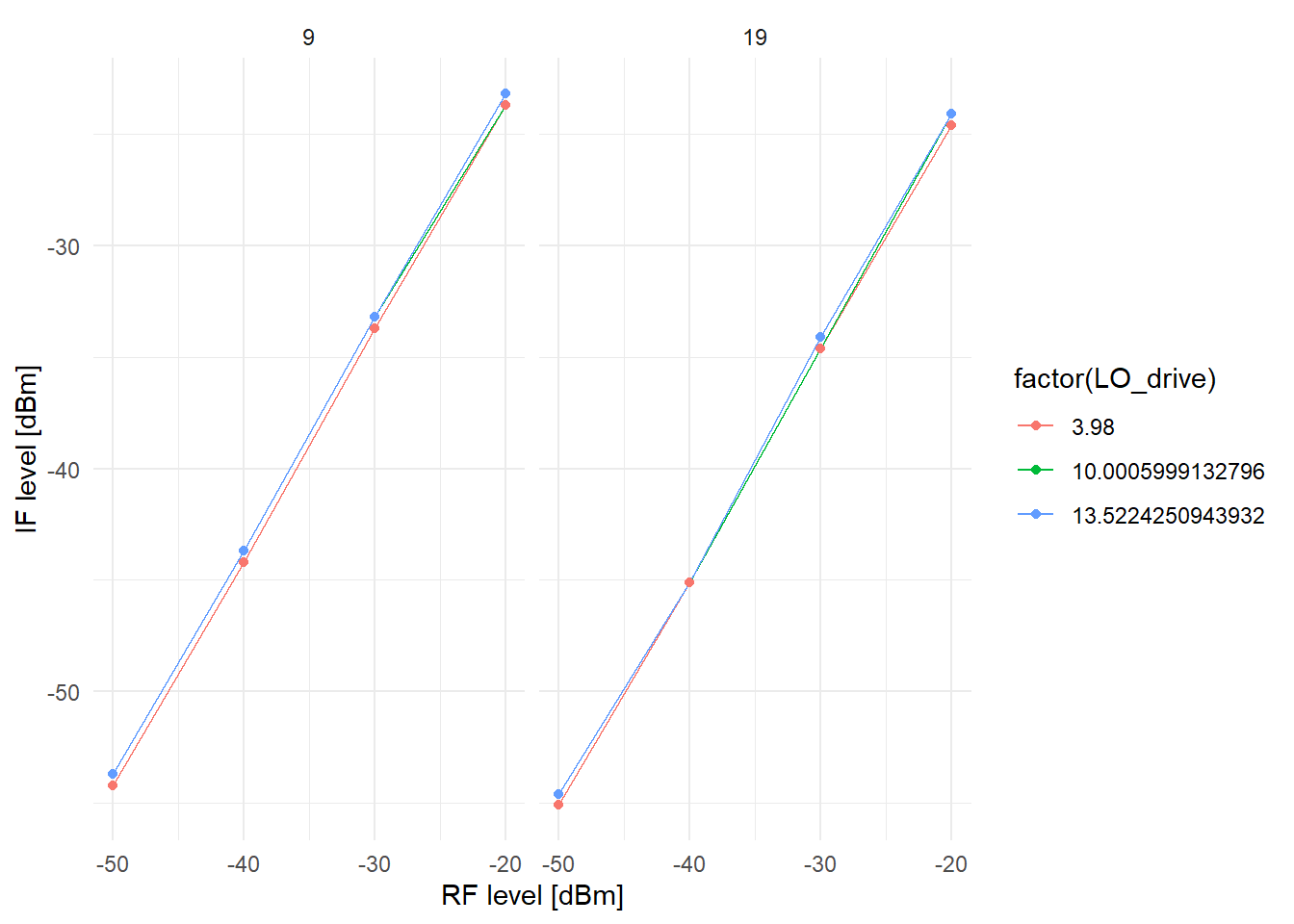 The main mixing products depend on the RF level, but not so much on the drive levels that I’ve been looking at: